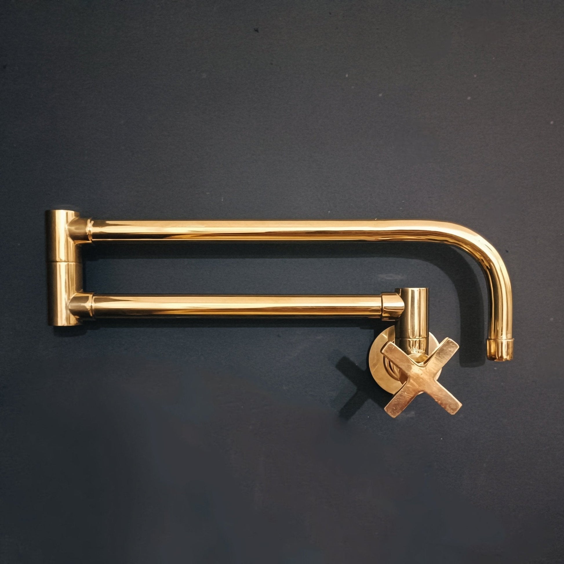 Give your kitchen a modern edge with this unlacquered brass pot filler kitchen faucet.
