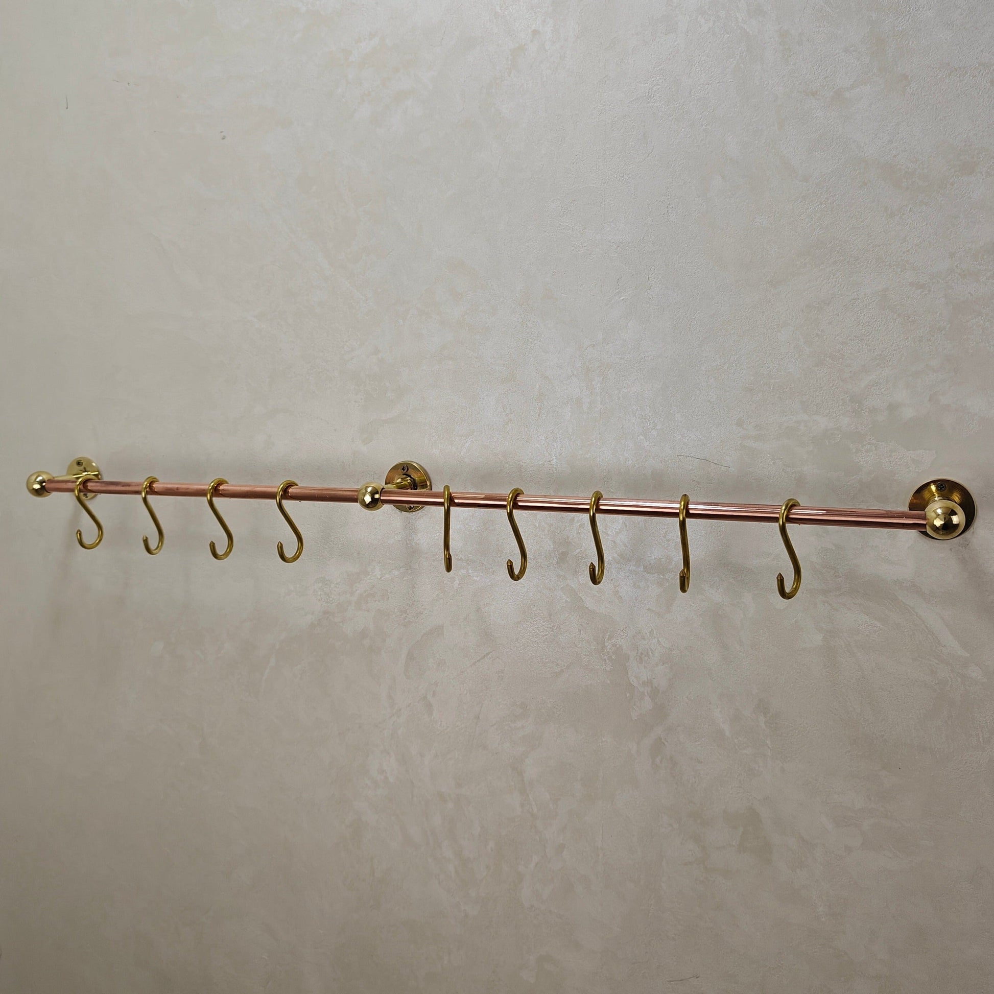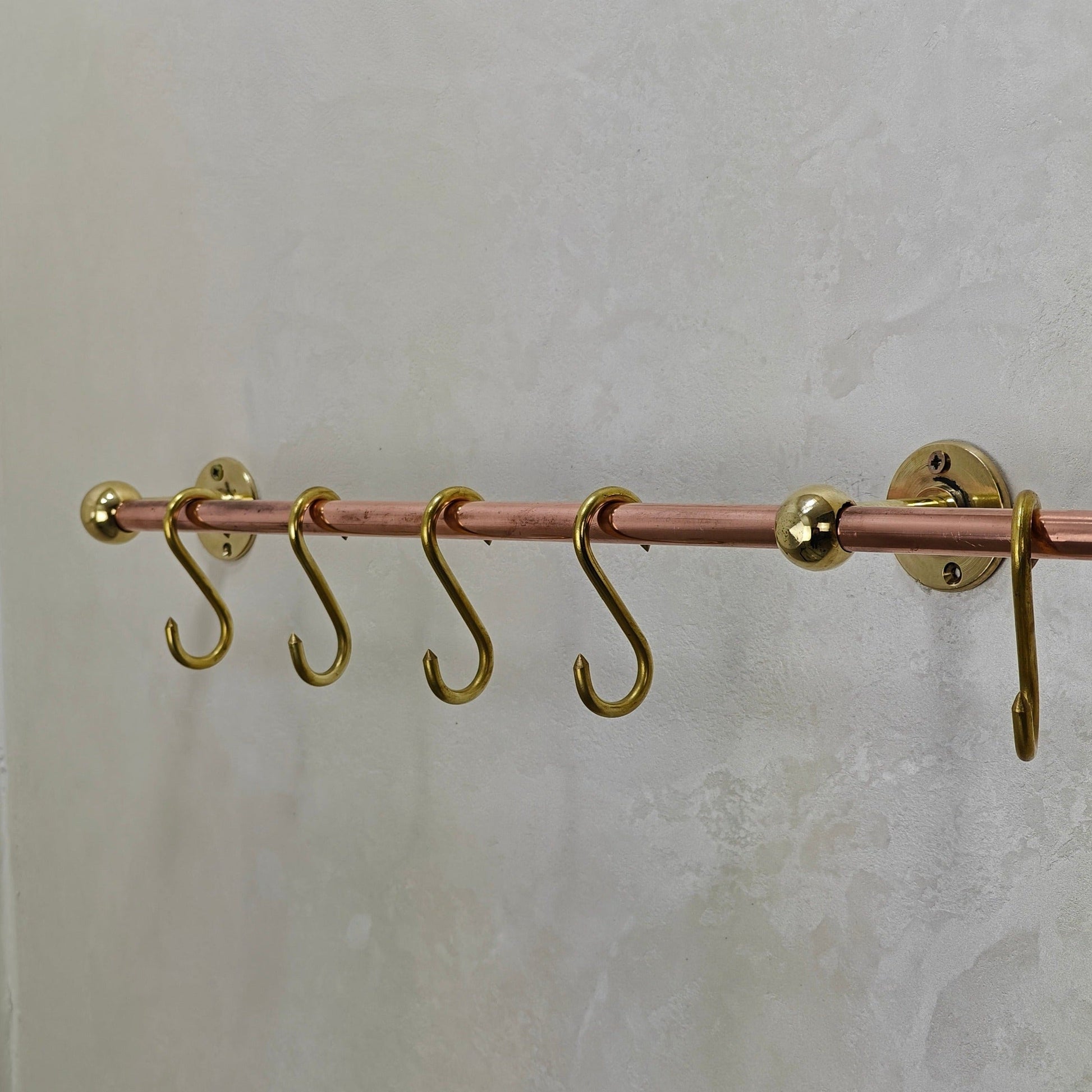 The size of the rail is customizable, as are the 'S' hooks.