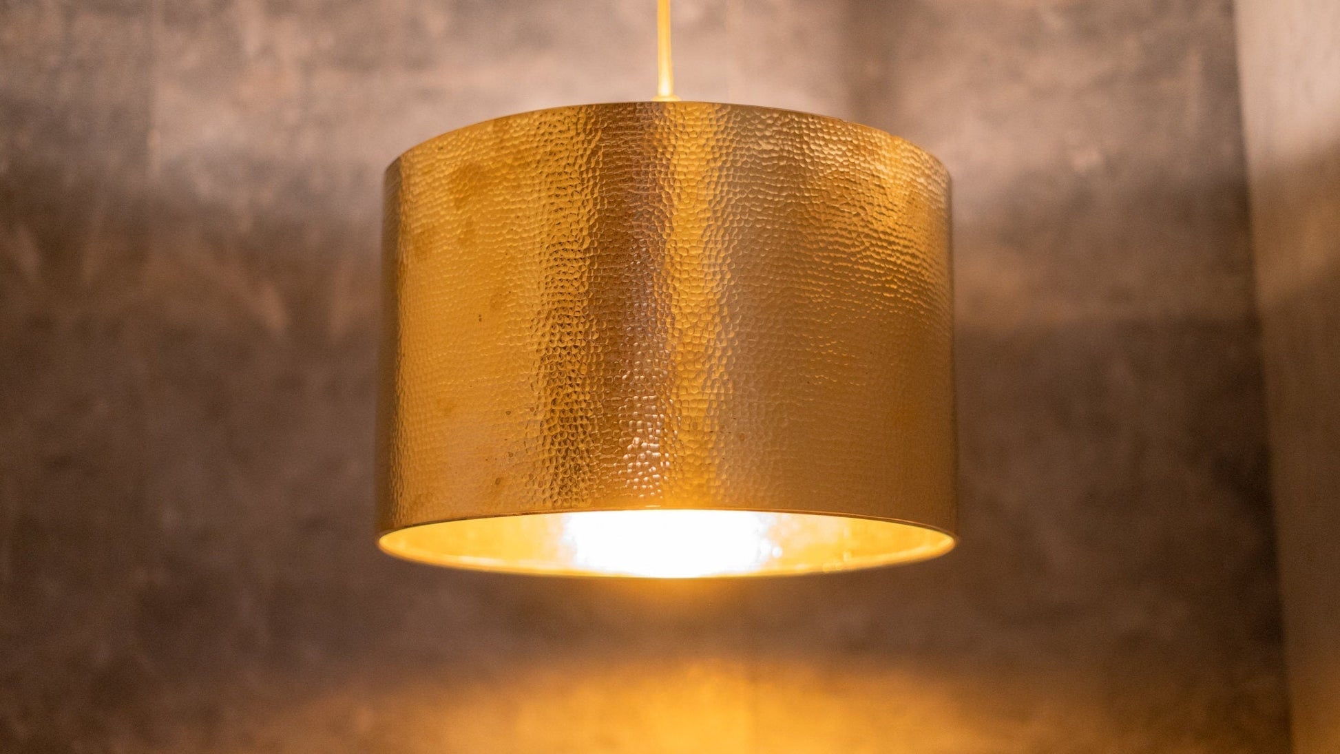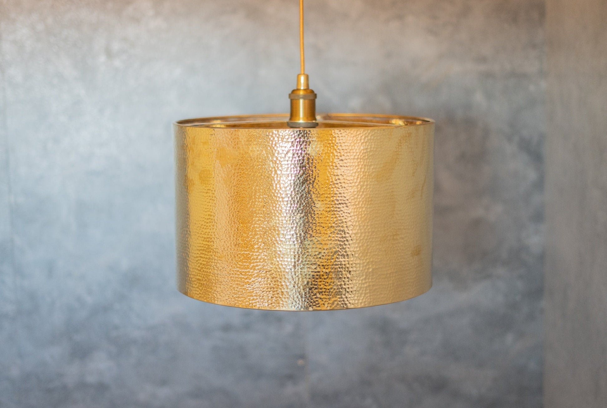 Hammered Brass Cylinder Pendant Light, Unlacquered Brass Pendant Light