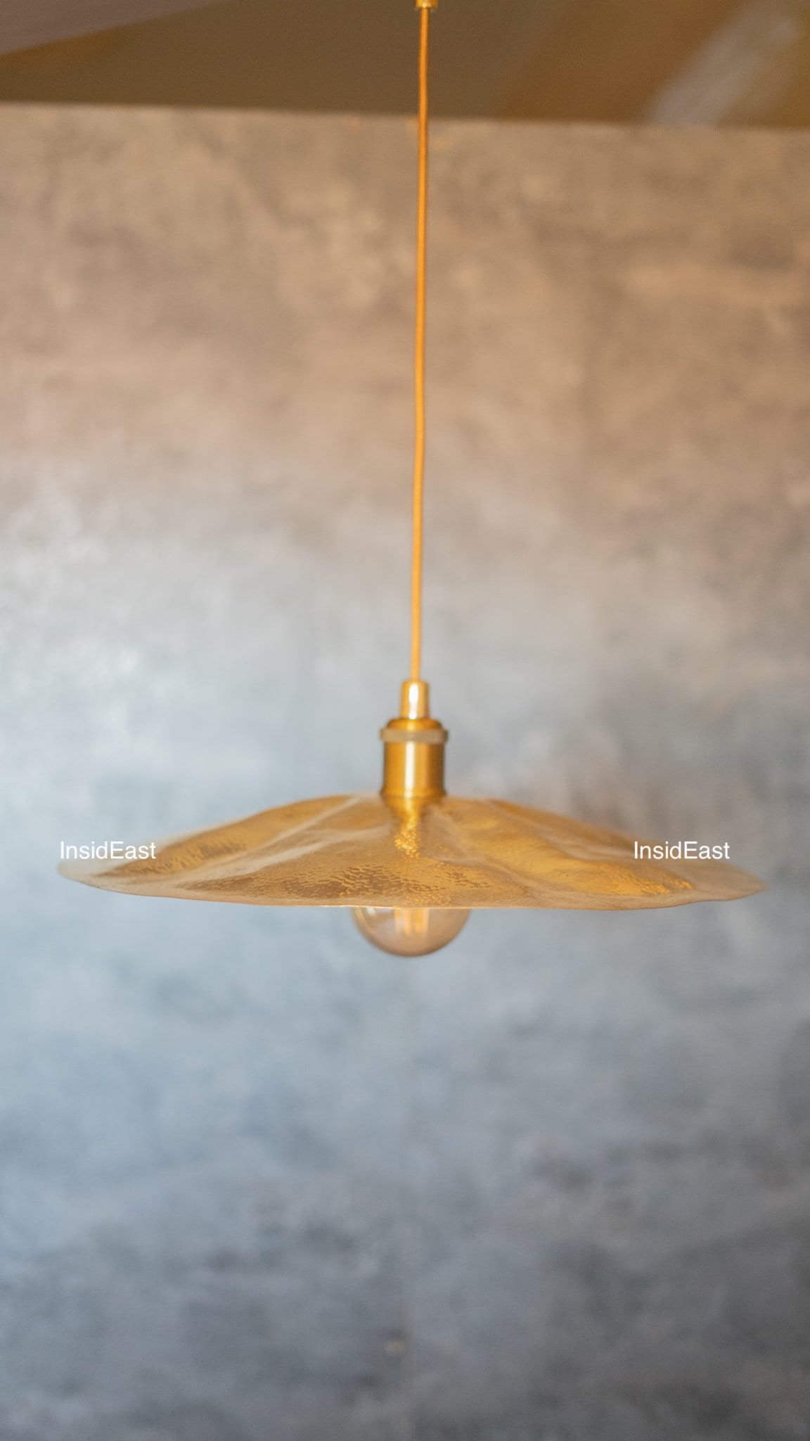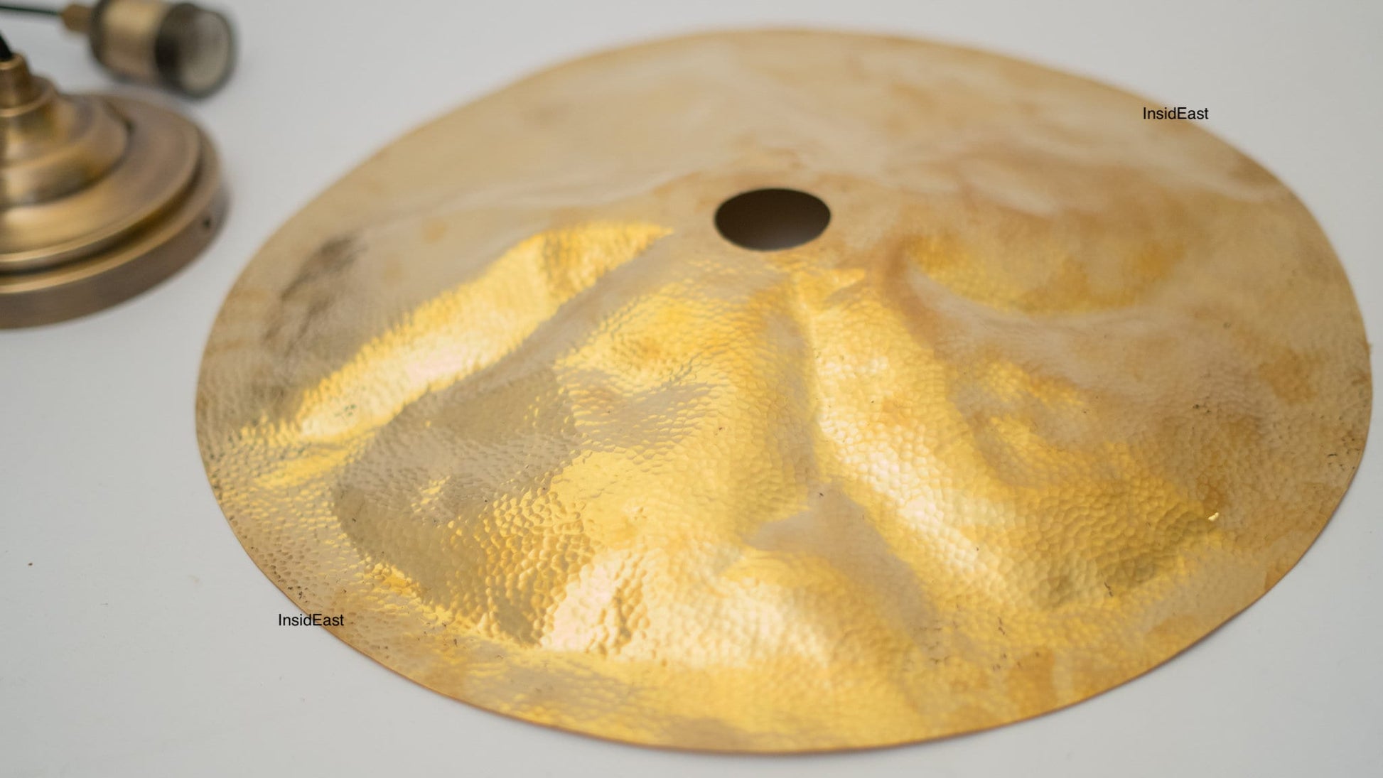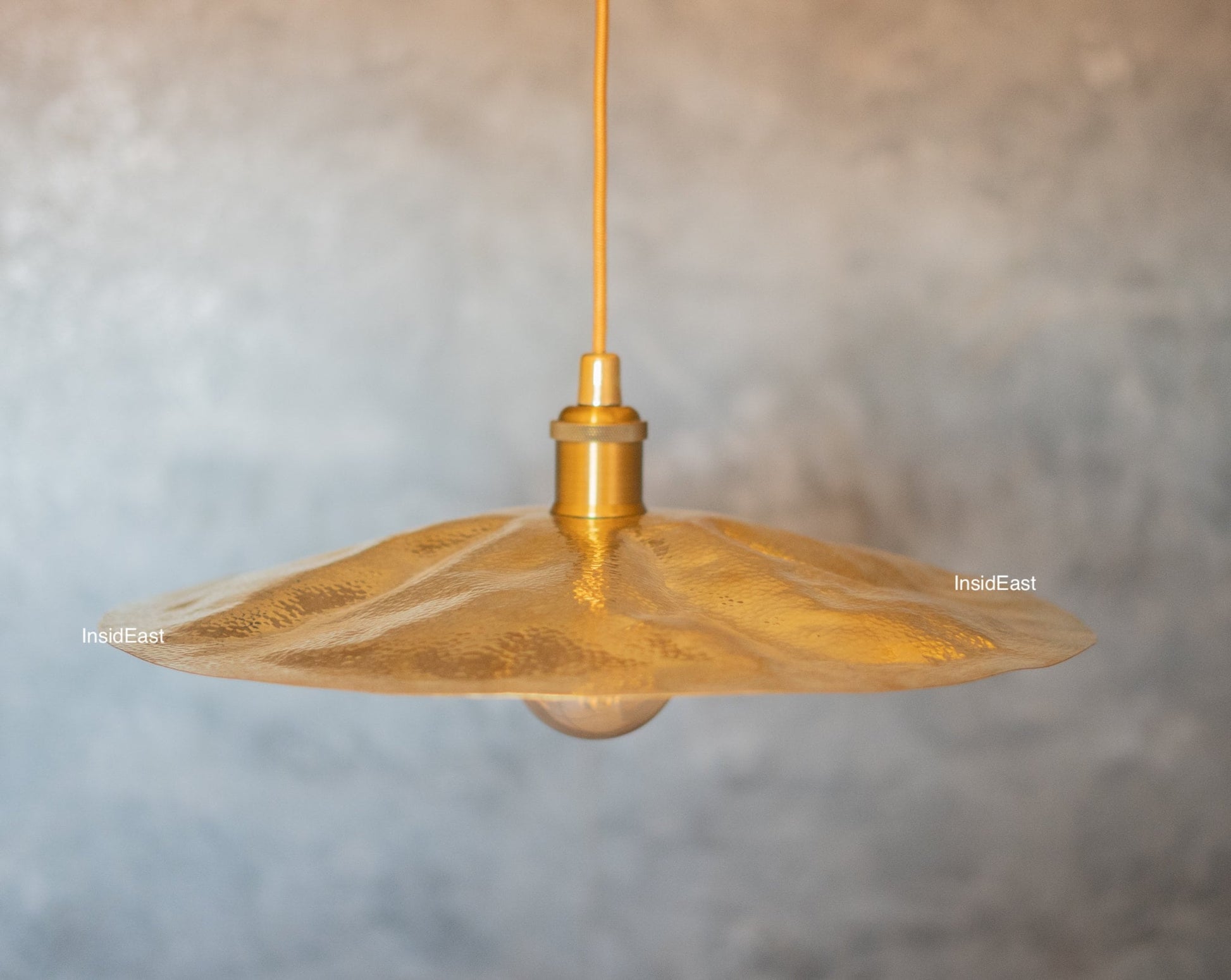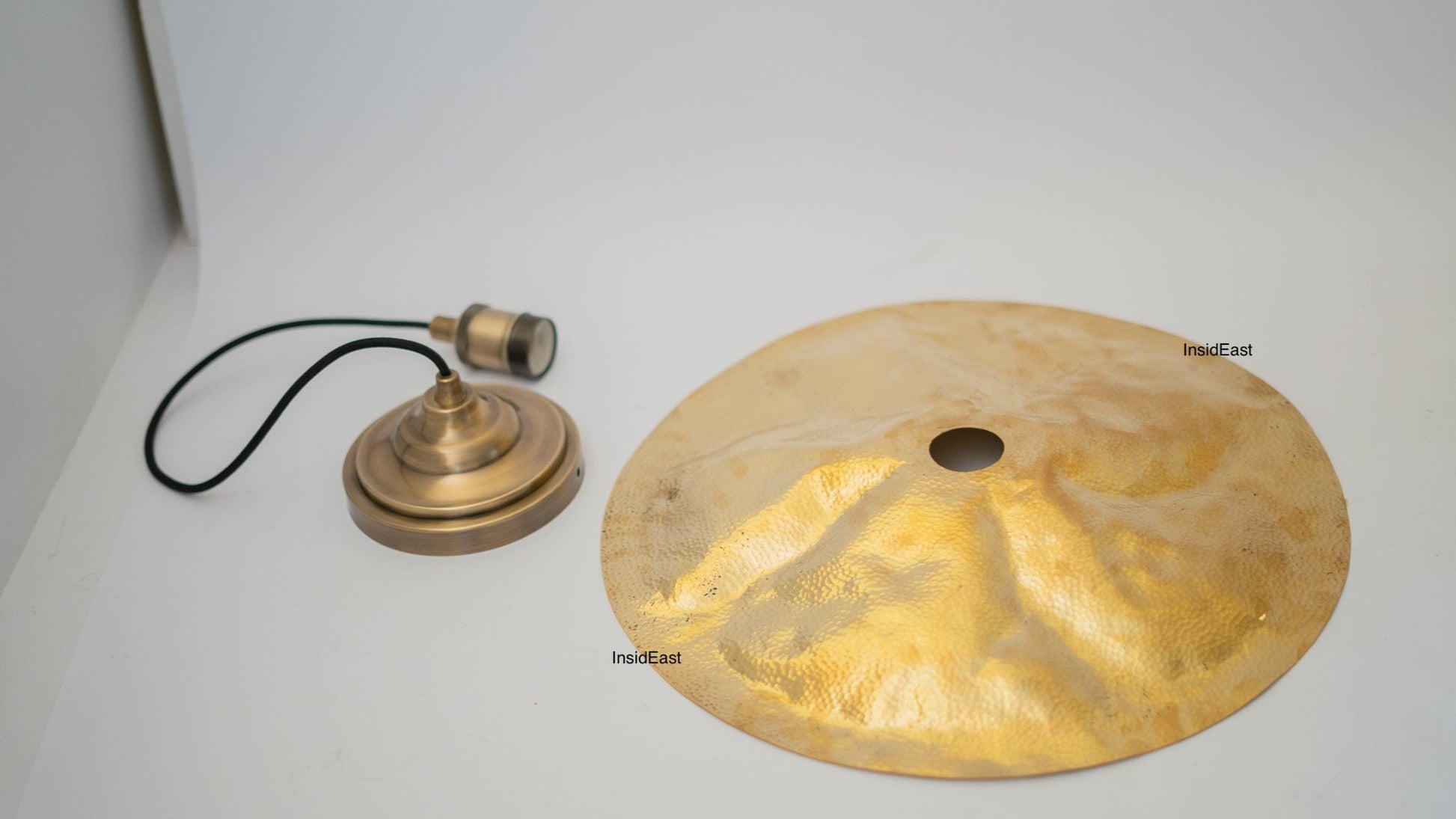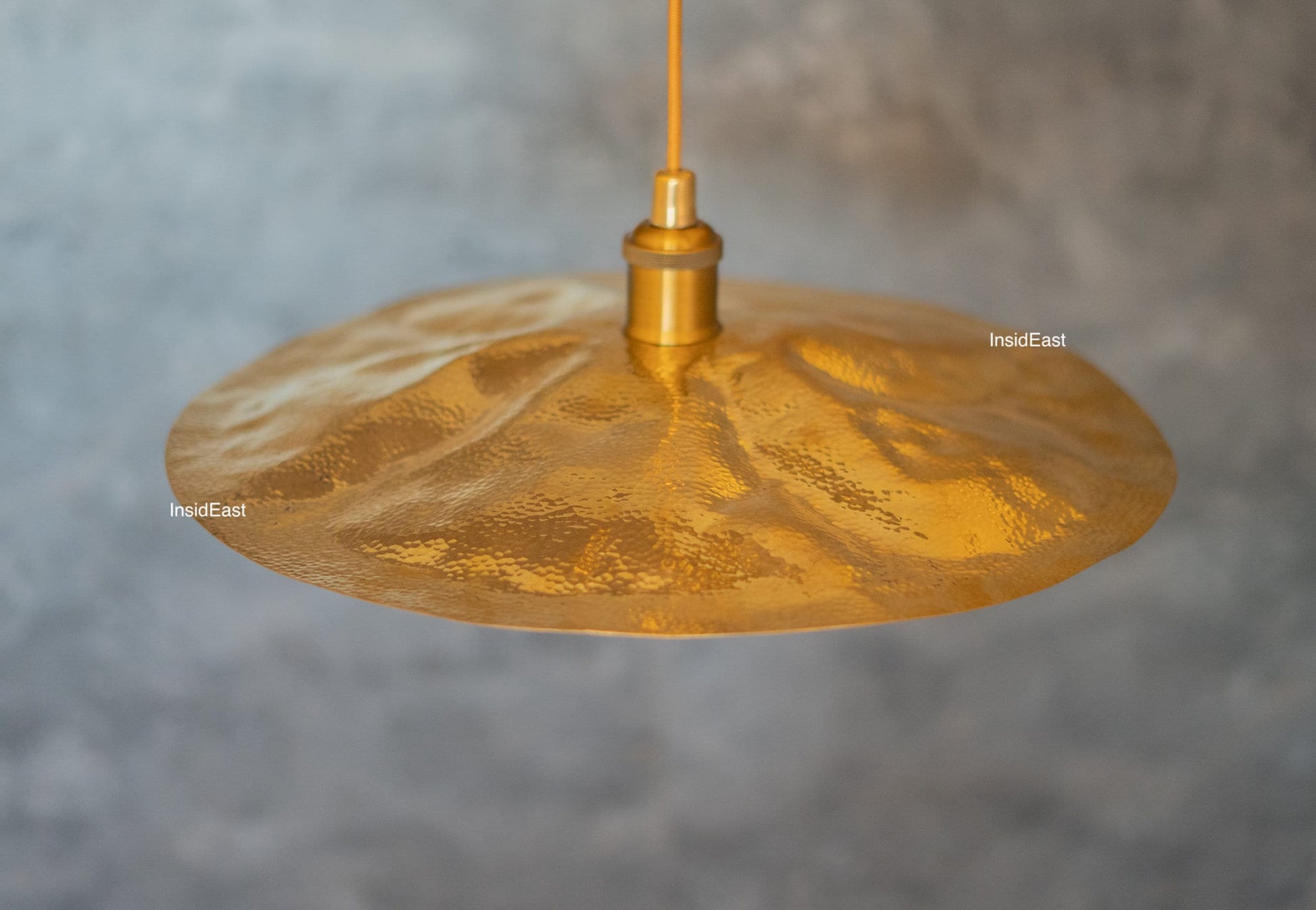 Hammered Brass Flat Disc Pendant Light, Brass Plate Lampshade, Flat Circle Shade