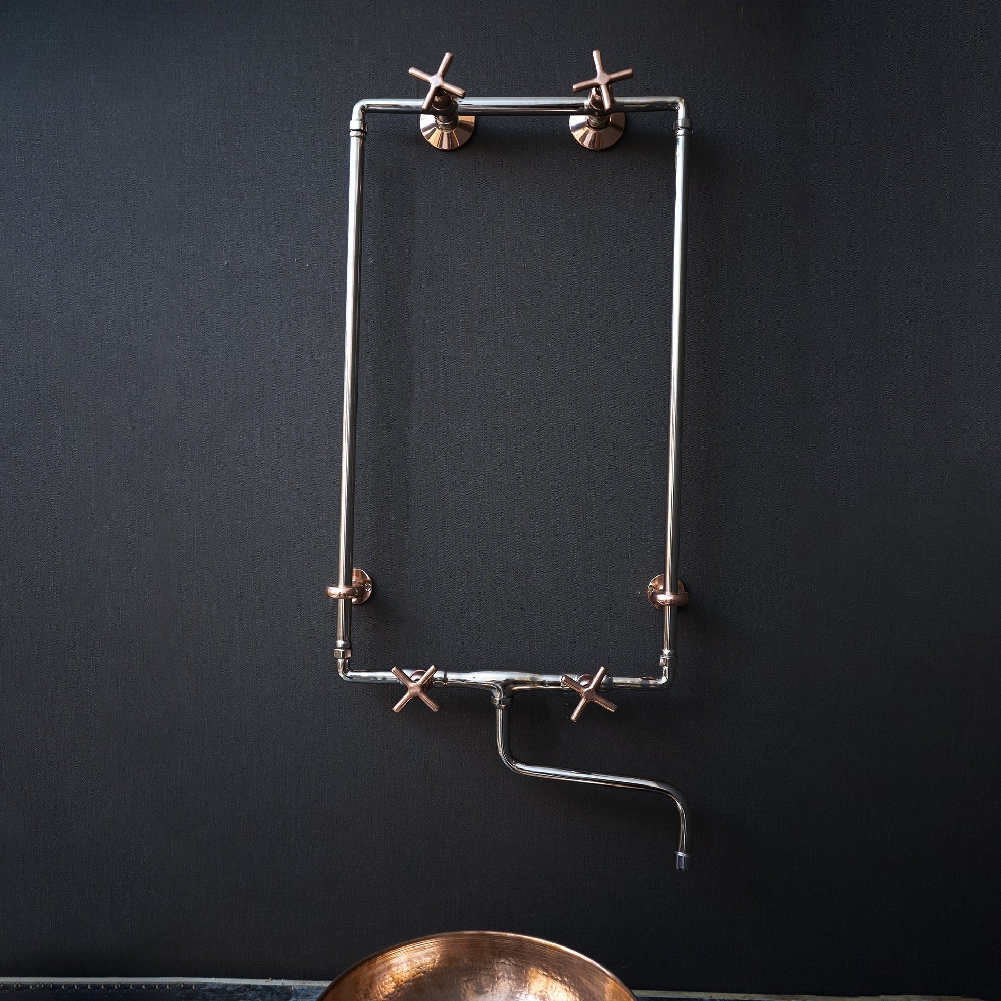 Industrial style lovers will be thrilled with this exceptional handmade sink faucet with an exposed supply and downward swivel spout.