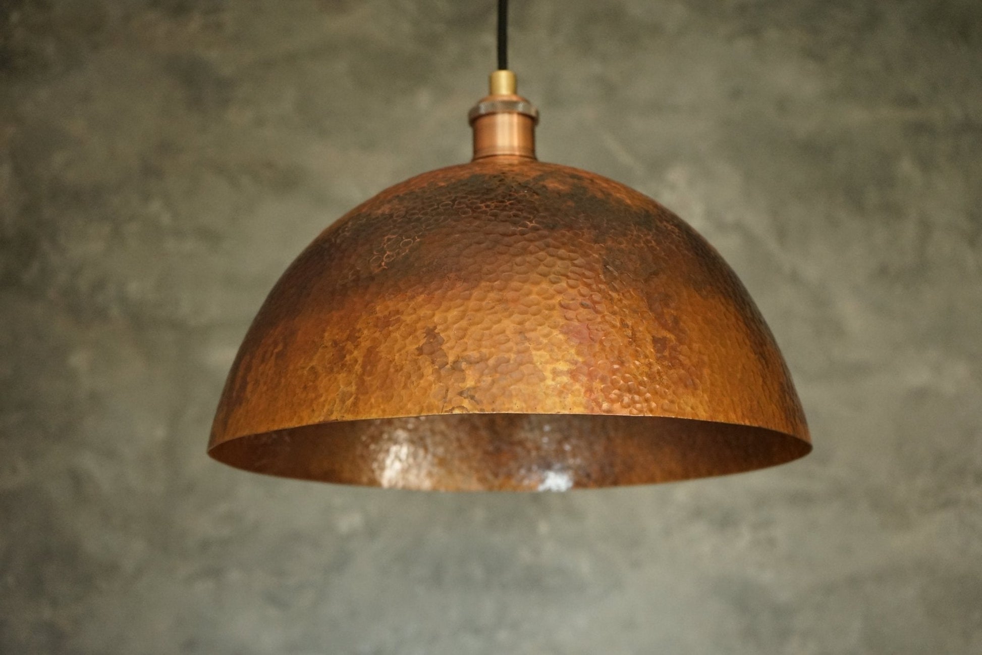 Oxidized Copper Pendant Light, Dome Ceiling Light, Hanging Kitchen Island Light Fixture