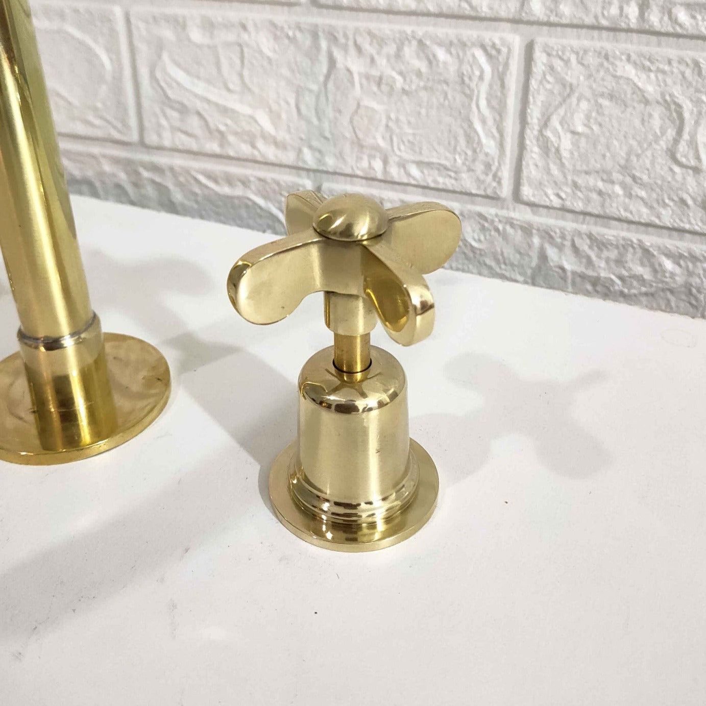 Our Unlacquered Brass 3 Holes Bathroom Faucet. Crafted from High quality Brass, this widespread lavatory faucet adds a touch of unique design to your bathroom.