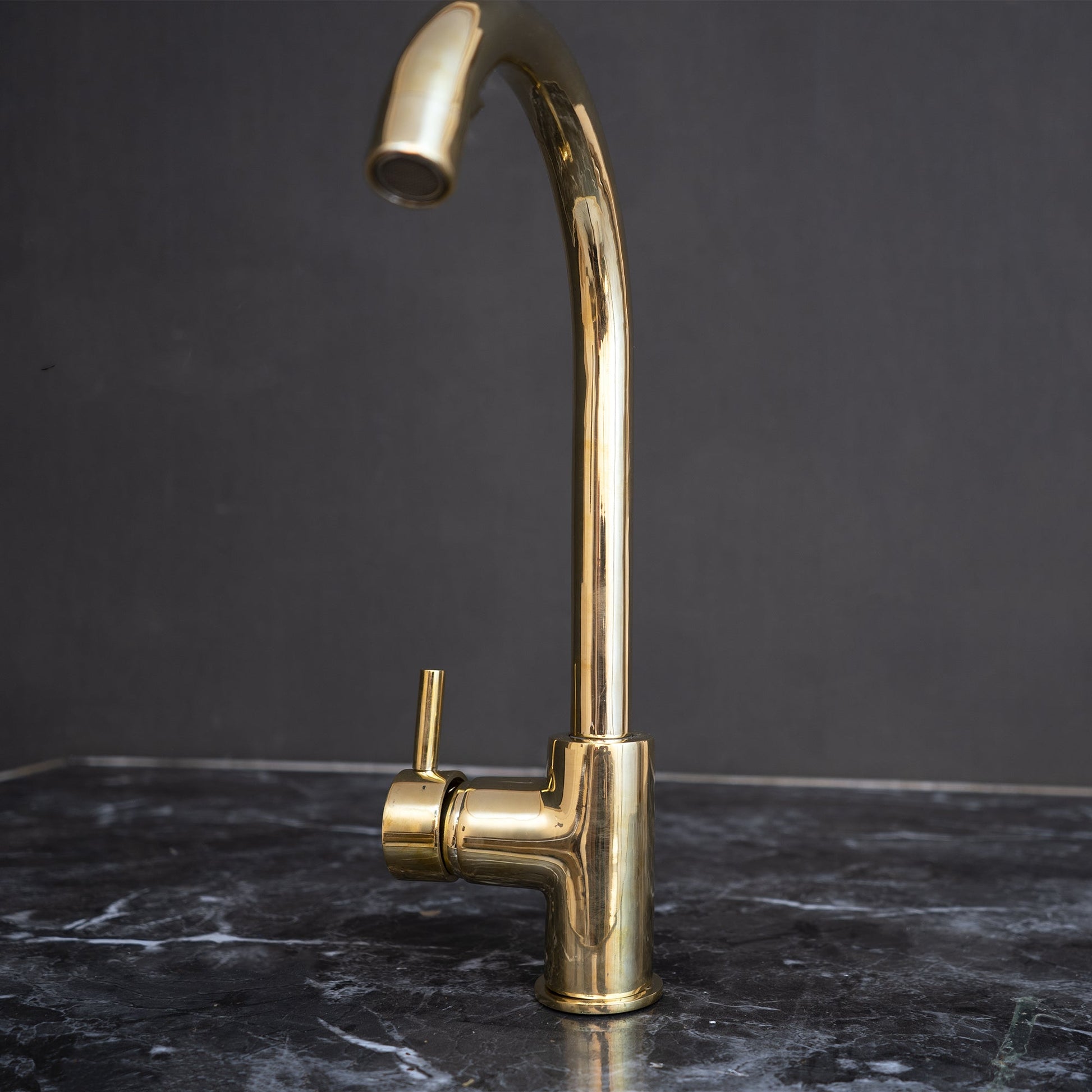 This Brass Bathroom Faucet with a lever handle has a 360-degree swivel gooseneck, making it the perfect focal point for your Kitchen. Industrial steam pipes inspire the design of this solid brass product.
