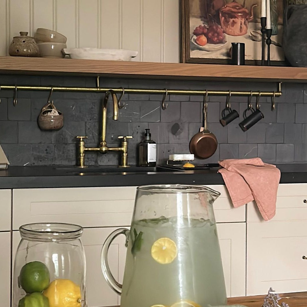 Introducing our Unlacquered Antique Brass Bridge Faucet with Center Ball, a distinguished addition to your kitchen that seamlessly marries vintage charm with modern functionality. Crafted in exquisite unlacquered antique brass, this bridge faucet is a testament to timeless elegance. The center ball design adds a unique focal point, creating a striking visual appeal in your culinary space. With its thoughtful design, this kitchen faucet not only enhances the aesthetics but also ensures practicality. The bridge construction brings a classic touch, while the unlacquered finish allows the brass to age gracefully, developing a rich patina over time. Elevate your kitchen experience with this exquisite piece that embodies the perfect balance of antique allure and contemporary convenience.