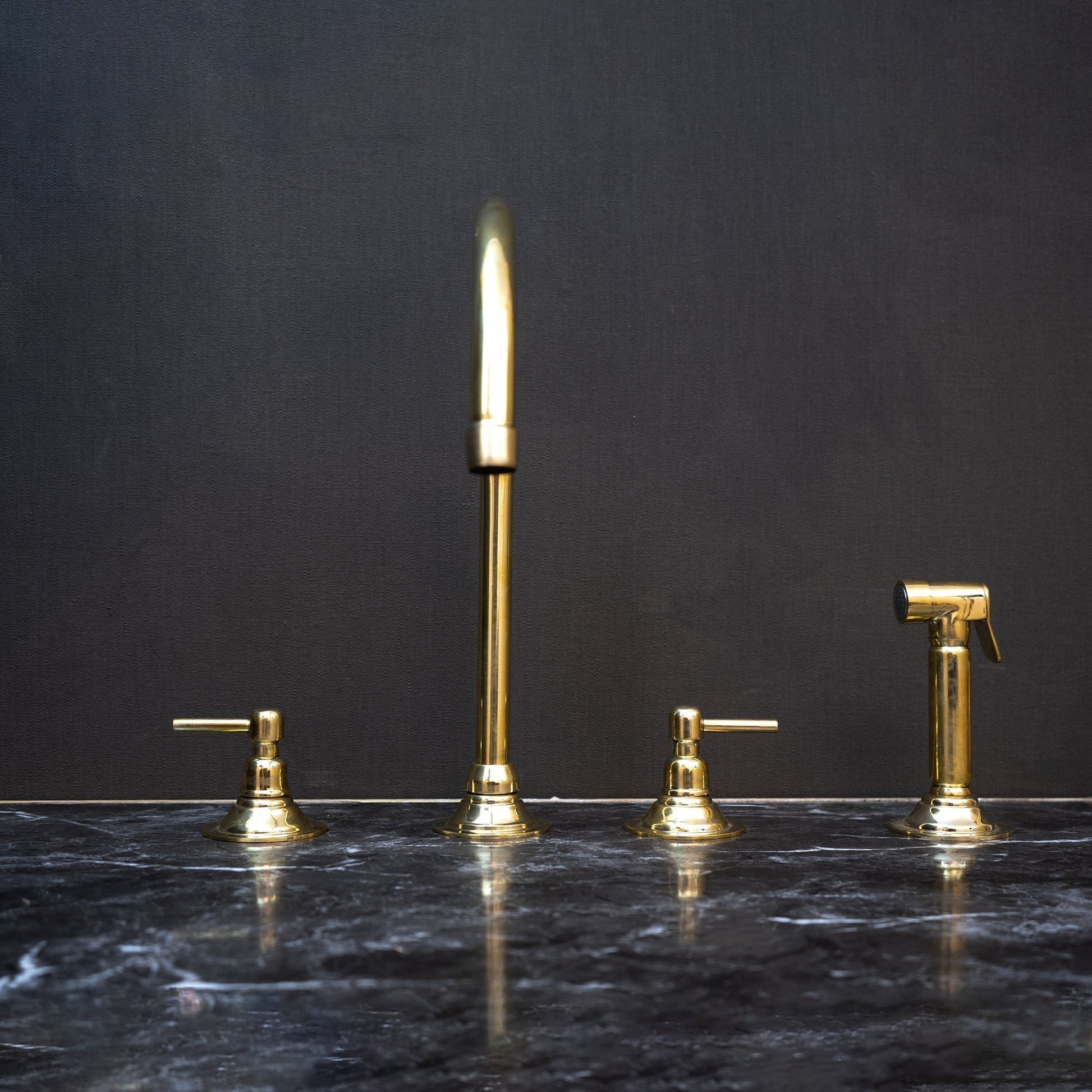 Unlacquered Brass Gooseneck Deck Mounted Kitchen Faucet