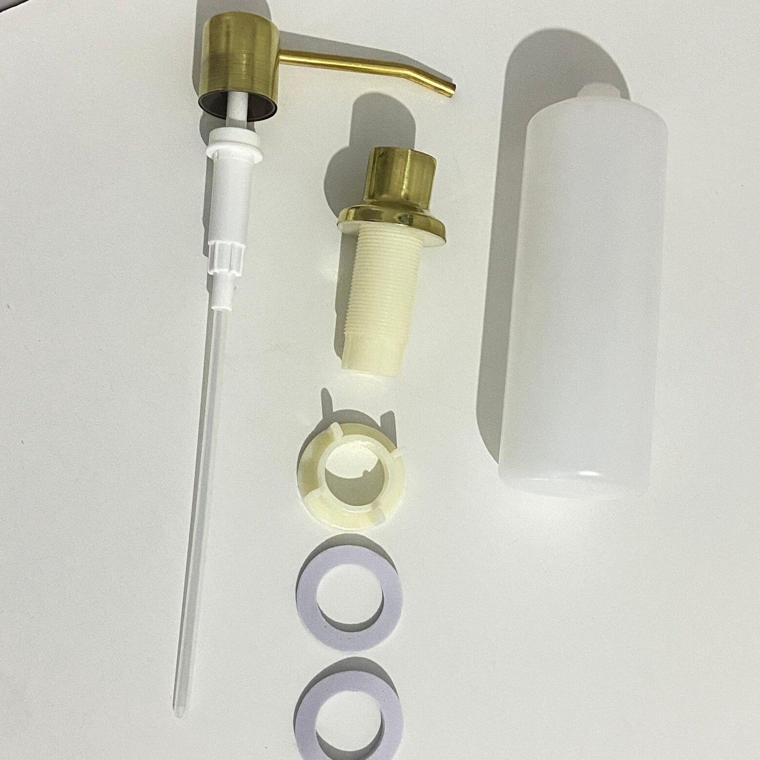 Elevate your kitchen with this built-in, unlacquered brass soap dispenser. Crafted for seamless elegance, the brass develops a warm patina over time, adding timeless charm to your sink. Enjoy practical functionality and a touch of luxury with this high-quality, built-to-last dispenser.